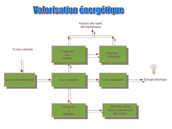 La plupart des produits (surtout dans les ordures ménagères) ont reçu au cours de leur fabrication ou de leur croissance, une certaine quantité d'énergie. En fin de vie de ces produits, afin de limiter le coût du traitement, on cherche à récupérer une partie de cette énergie sous forme de chaleur. En effet, au cours de leur combustion, les déchets libèrent de l'énergie sous forme de chaleur. Chaleur qu'on utilise pour produire de l'électricité ou du chauffage collectif.