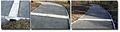 «Lombriducs», permettant aux invertébrés (dont vers de terre) ou à des micromammifères de traverser un chemin de promenade. La terre d'origine n'a pas été touchée ni damée durant le chantier, protégée par l'élément blanc, en forme de U renversé, (Parc urbain, Lille, Nord de la France) |