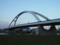 Plus une viaduc est haut, moins son impact fragmentant se fera sentir au sol ; Dans un contexte calme et sécurisant les animaux circuleront sous l'infrastructure. (Ohio Turnpike Bridge (Interstate 80) sur la rivière Cuyahoga (USA). Ce type d'ouvrage peut néanmoins poser problème pour certains oiseaux migrateurs qui suivent les vallées. |
