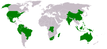 Dans l'ordre alphabétique, les 17 pays[1] identifiés comme pays mégadivers par l'UNEP-WCMC sont :